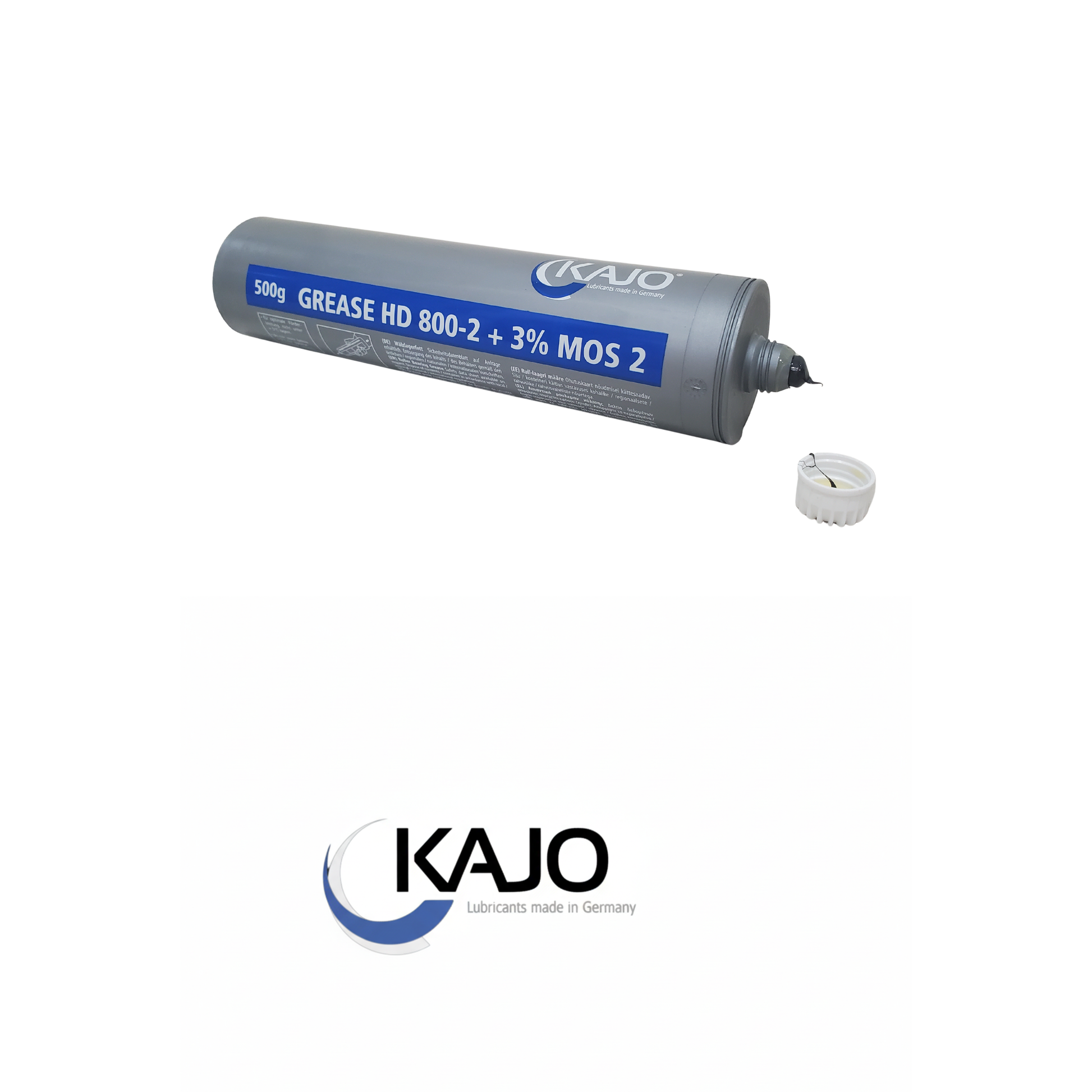 KAJO Grease HD 800-2 + 3% MoS2 is a lithium-calcium complex thickened grease based on mineral oil, enriched with polymers and tackifiers, and fortified with 3% Molybdenum also known as moly. This unique combination of thickeners and polymers
